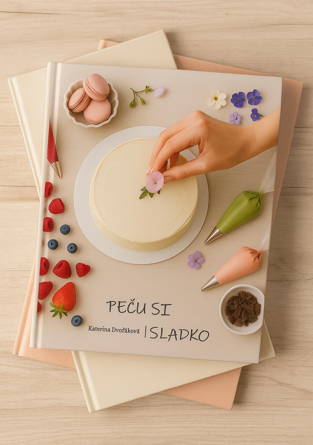 Knihu s názvem Peču si Sladko jsem vytvořila s přáním, aby si každý mohl postavit dort podle sebe. Bez strachu, že „něco musí být přesně tak“.Je to stavebnice chutí – z korpusů, krémů, želé, křupek i dalšího – kde můžeš popustit uzdu fantazii a tvořit tak, jak tě to napadne.